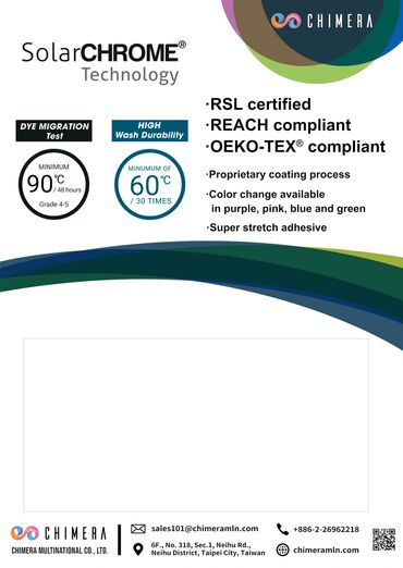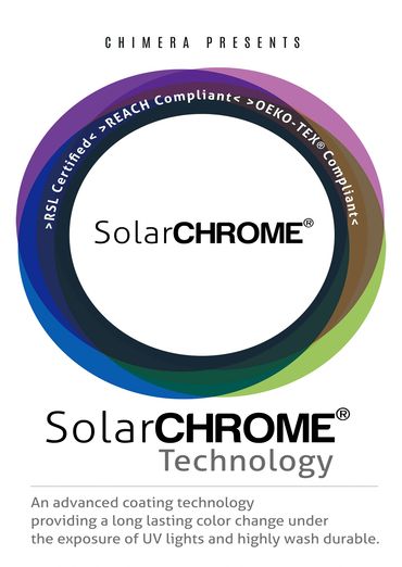 SolarCHROME® provides long lasting photochromic effect before and after wash with great hand feel, highly wash durable, and eliminating dye migration concerns. This innovation makes design very playful.